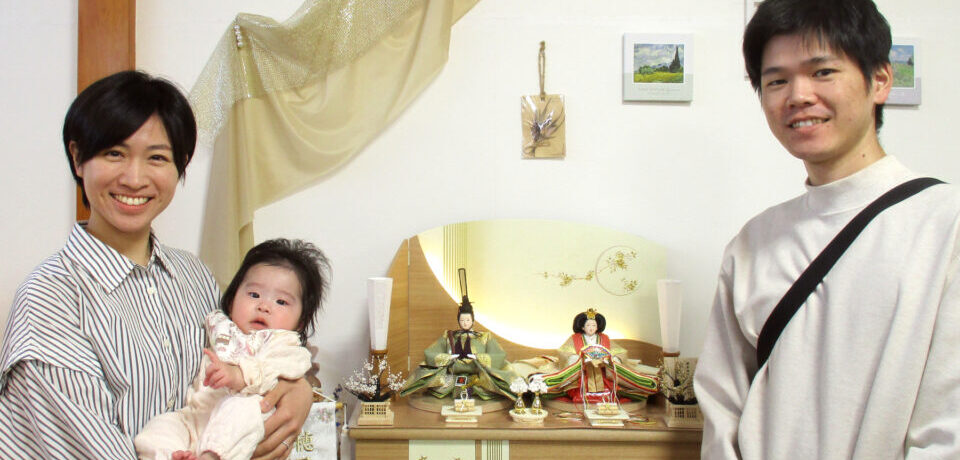 今回のお客さまは、浜松市の千晴(ちはる)ちゃんとご家族です🌸 後ろのお飾りは、木目の屏風に灯る間接照明が穏やかな雰囲気の「ことのは雛」です🎎✨ お人形は正倉院名物裂の西陣織を着ており、色合いも華やかで素敵😍 お花と雪洞を […]