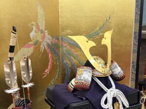 後ろのお飾りは、金屏風を彩る鳳凰が見事な五月人形です✨