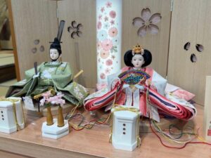 お人形は、春らしい色合いの西陣織で、特に優しいお顔をパパとママにお気に入りいただきました🥰