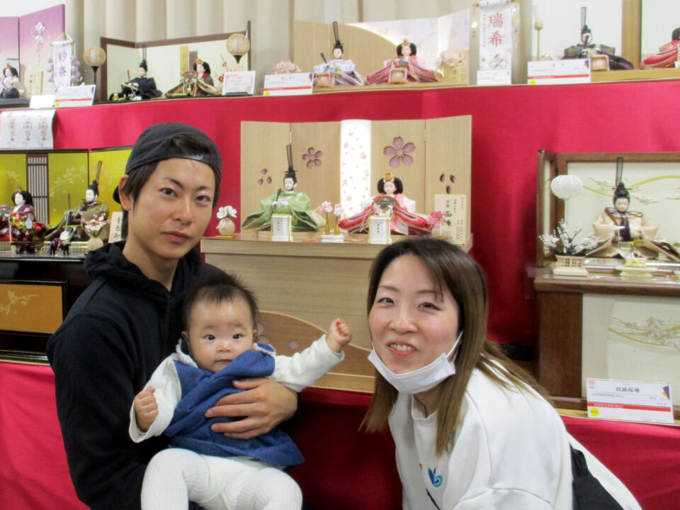 お人形は、春らしい色合いの西陣織で、特に優しいお顔をパパとママにお気に入りいただきました🥰