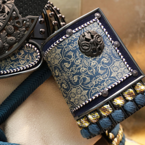 兜の中でも重要なパーツである吹返しに使用することで、力強さの中に優美さを感じさせてくれます。