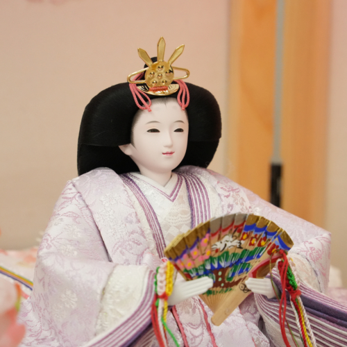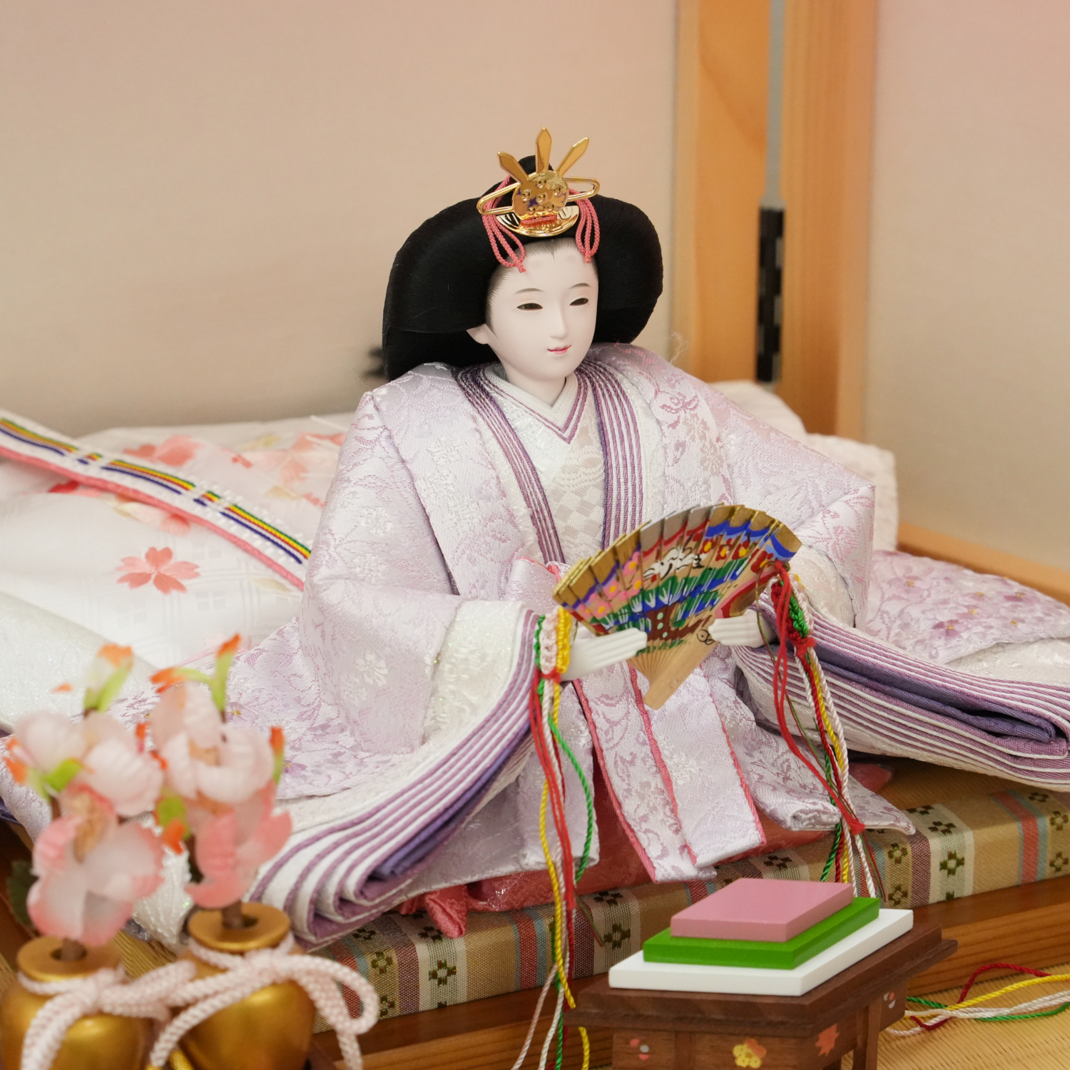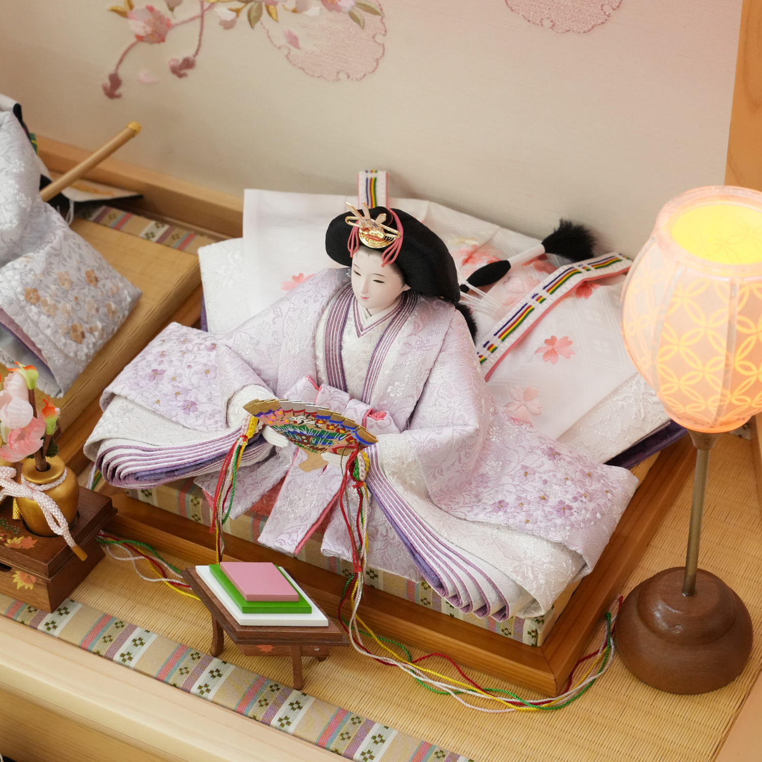 やわらかく陽だまりのような春の気配をたたえた三段飾りです。