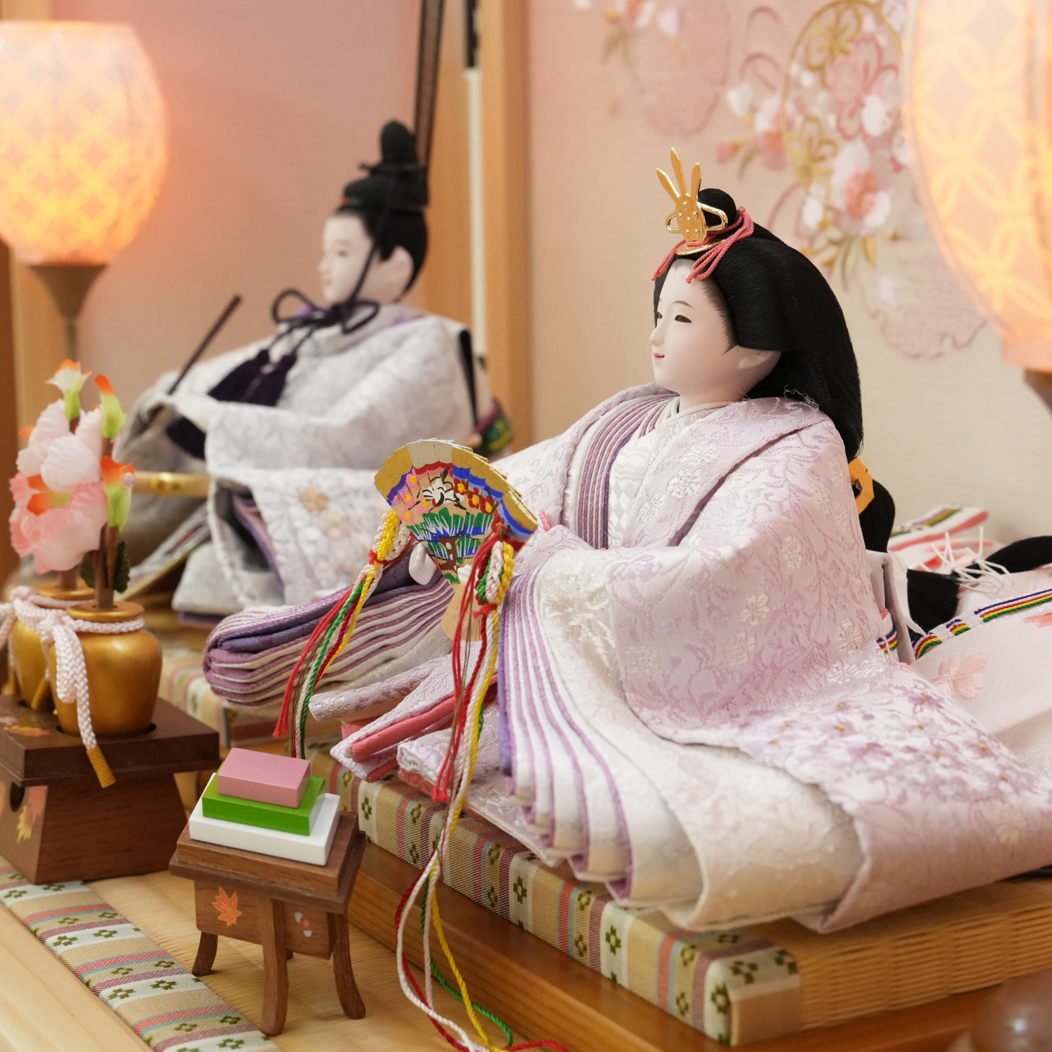 台と屏風は、ひな人形の印象を決定づける大切な要素です。