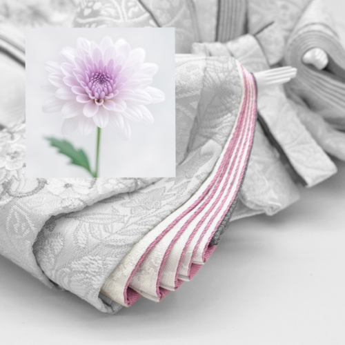 「菊重(きくがさね)」のかさね色では、表の白を通して紫の彩が透けてみえるようです。