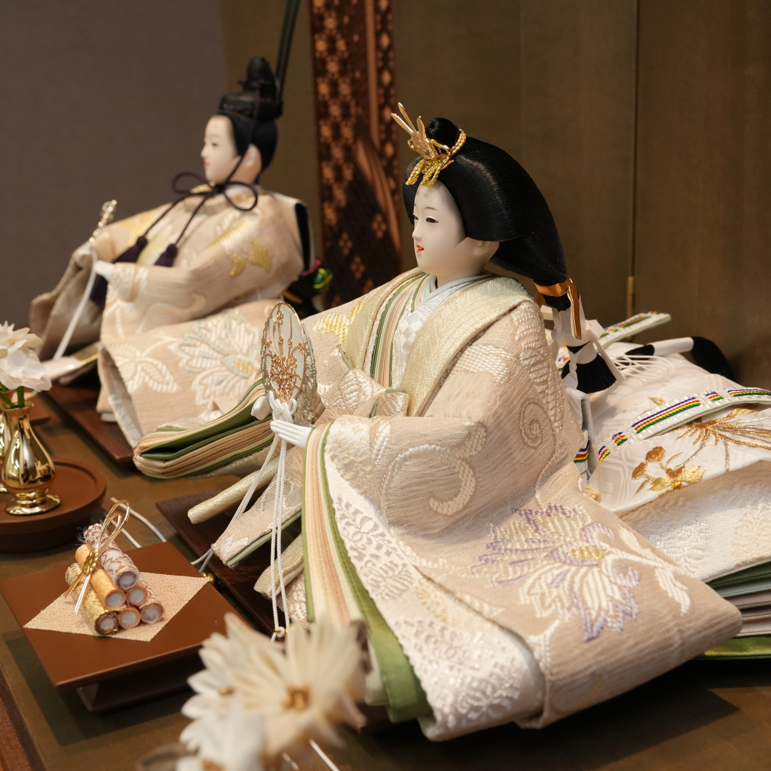 お雛様の美しく仲睦まじい姿に重ね合わせ、女の子の将来の幸せな結婚をお祈りします。